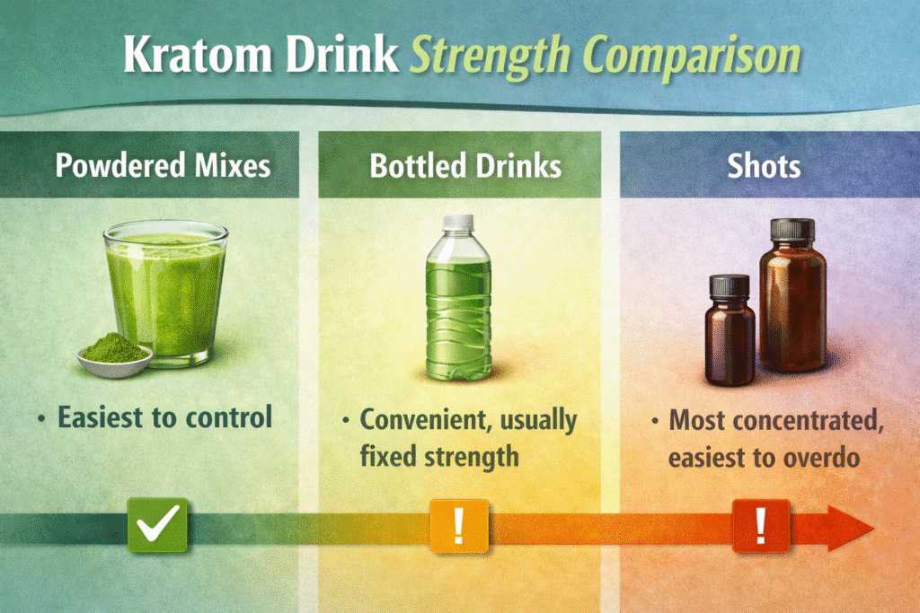 For a deeper breakdown, read our guide on: “How Strong Are Kratom Drinks?”